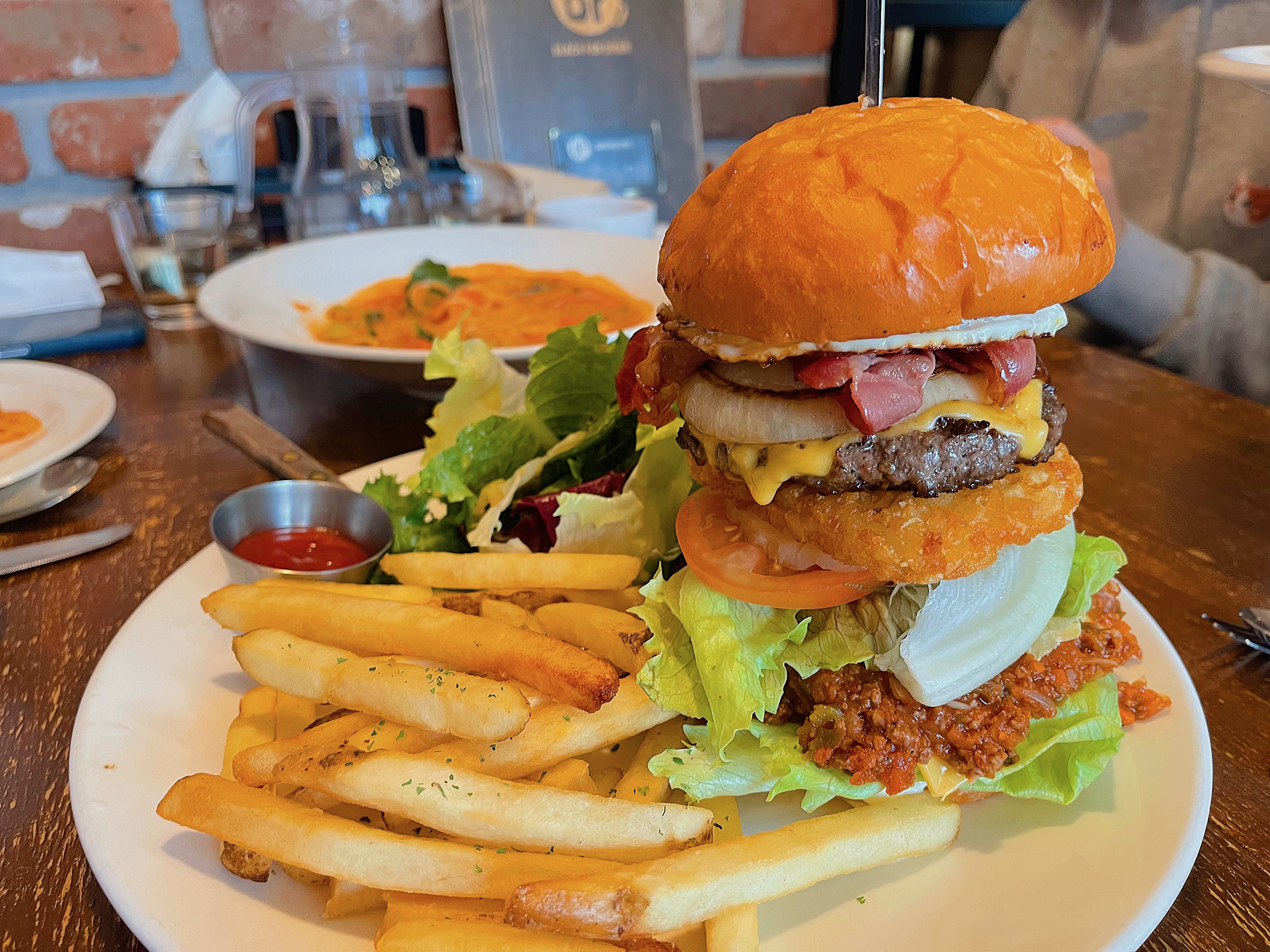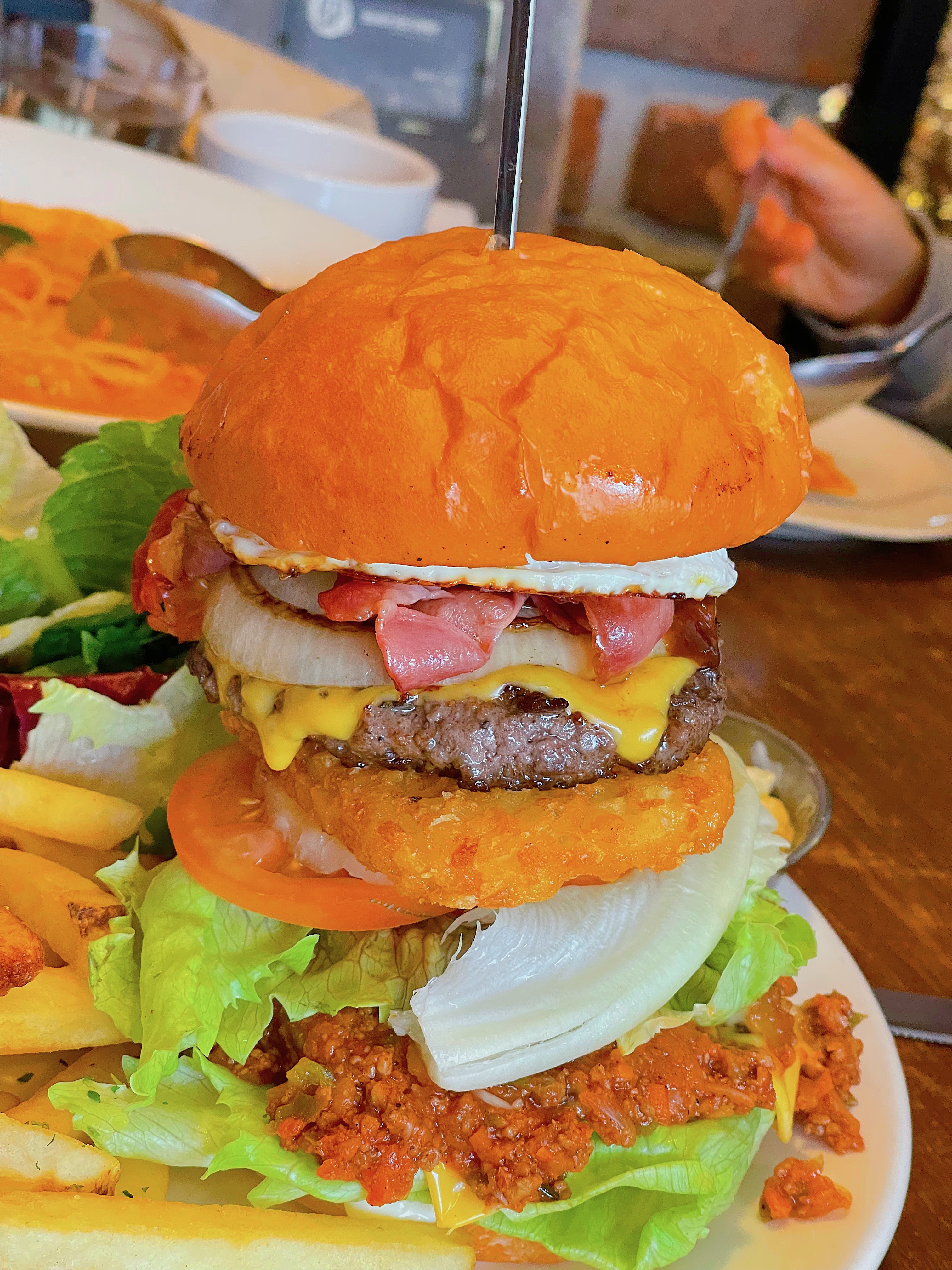 하나로 겹쳐진 것 같은 대형 수제버거.