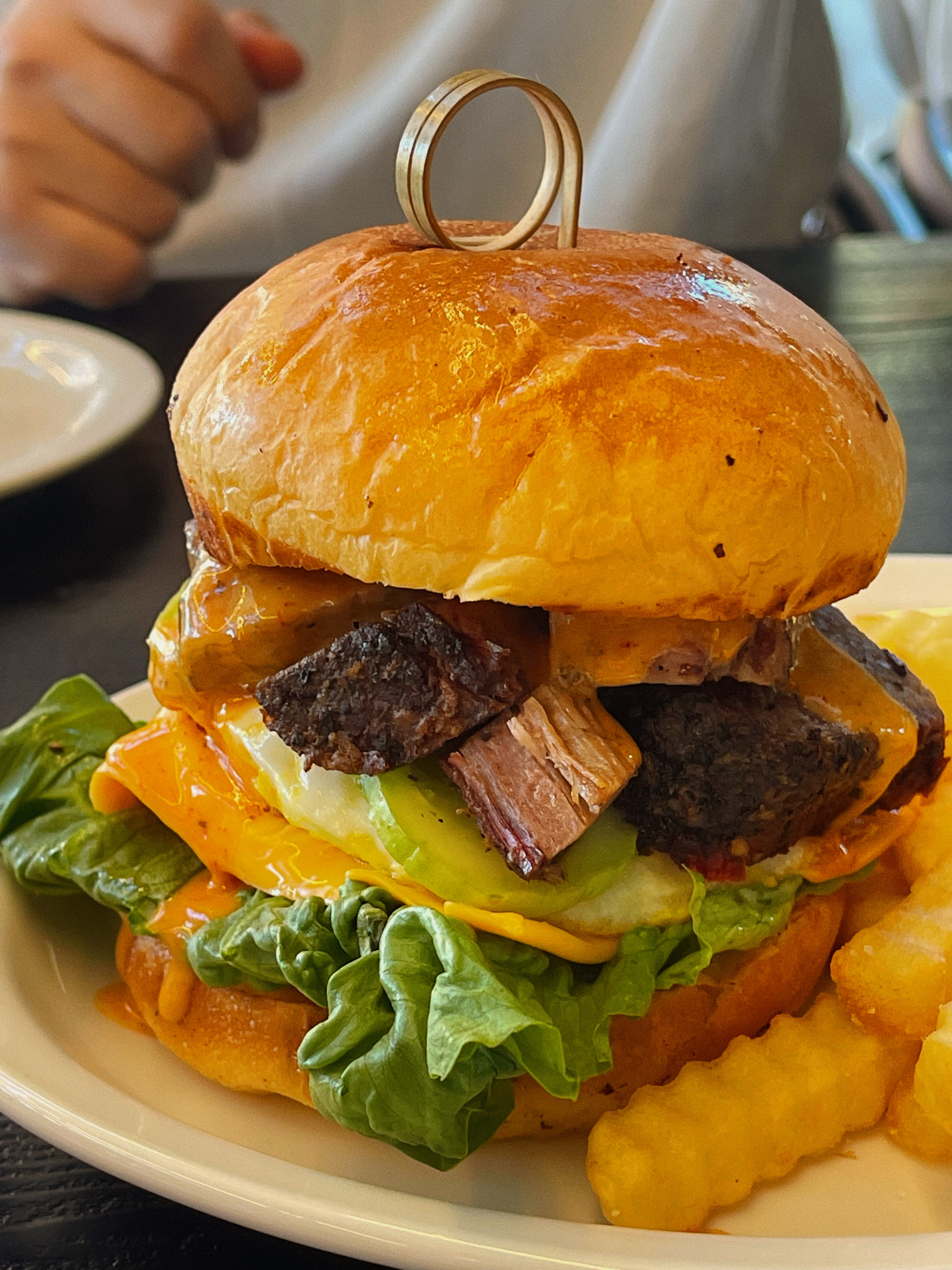 훈연바베큐가 들어간 햄버거임.